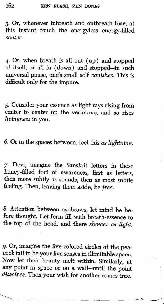 3. Or, whenever inbreath and outbreath fuse, at this instant touch the energyless energy-filled center.