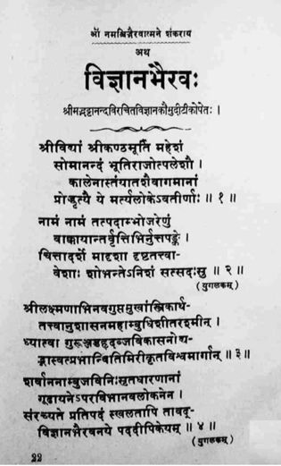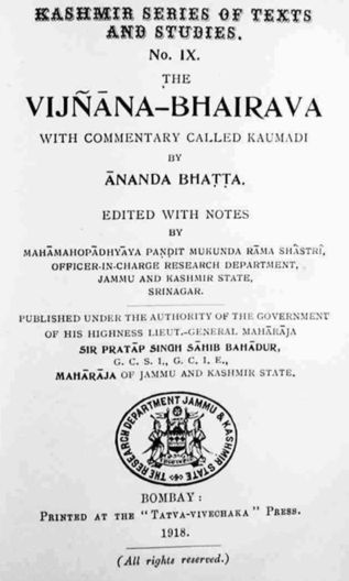 . This is the Kashmir Series of Texts and Studies, No. IX, “The Vijnana-Bhairava” with a “Commentary Called Kaumadi by Ananda Bhatta.” Printed at the Tatva-Vivechaka Press, Bombay, India, 1918.